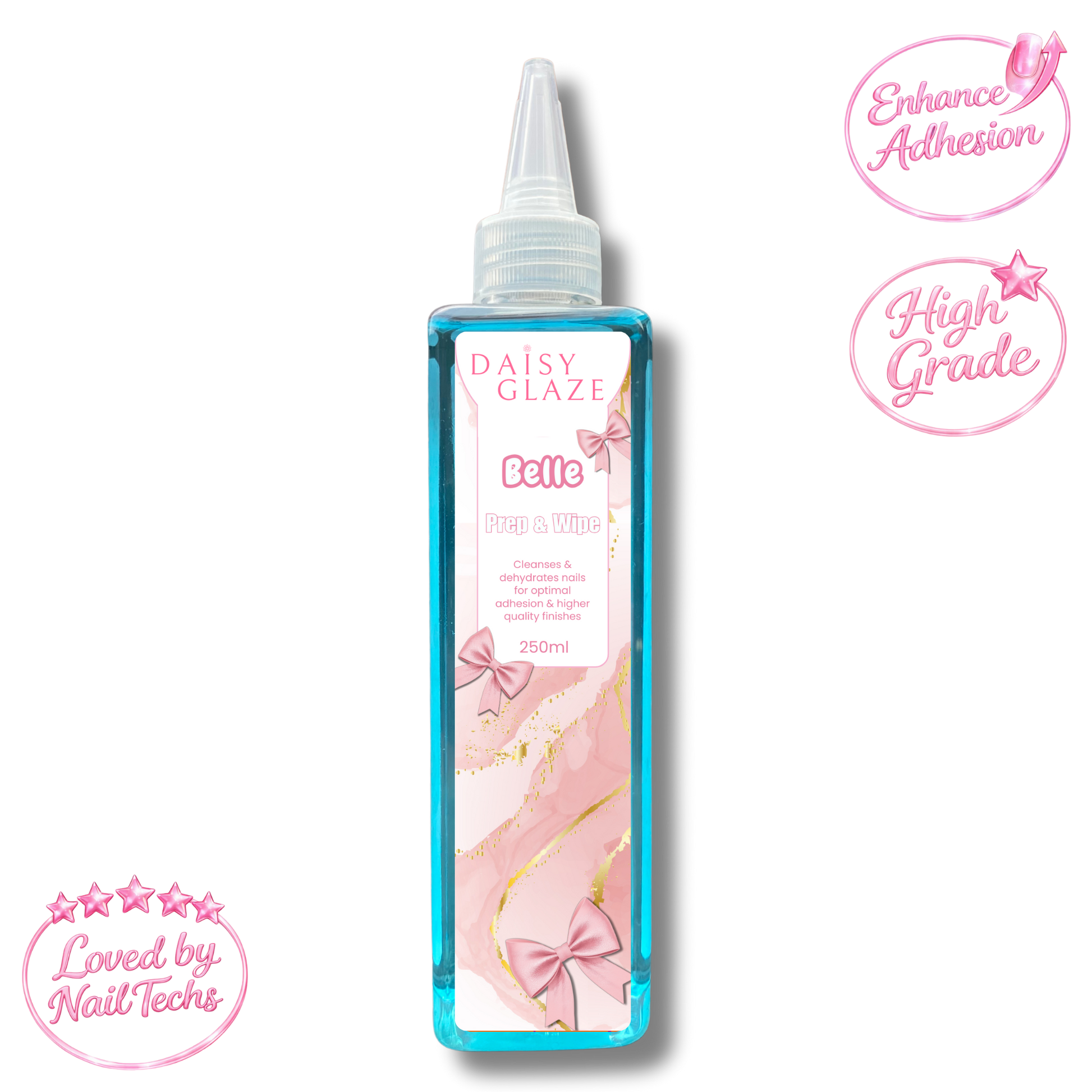 Perfect for acrylic, gel, BIAB and gel polish services, Belle Prep & Wipe removes oils, residue and dust to create the ideal base for long-lasting sets. The warm, sweet floral fragrance delivers a high-end, client-pleasing experience without overpowering the workspace.